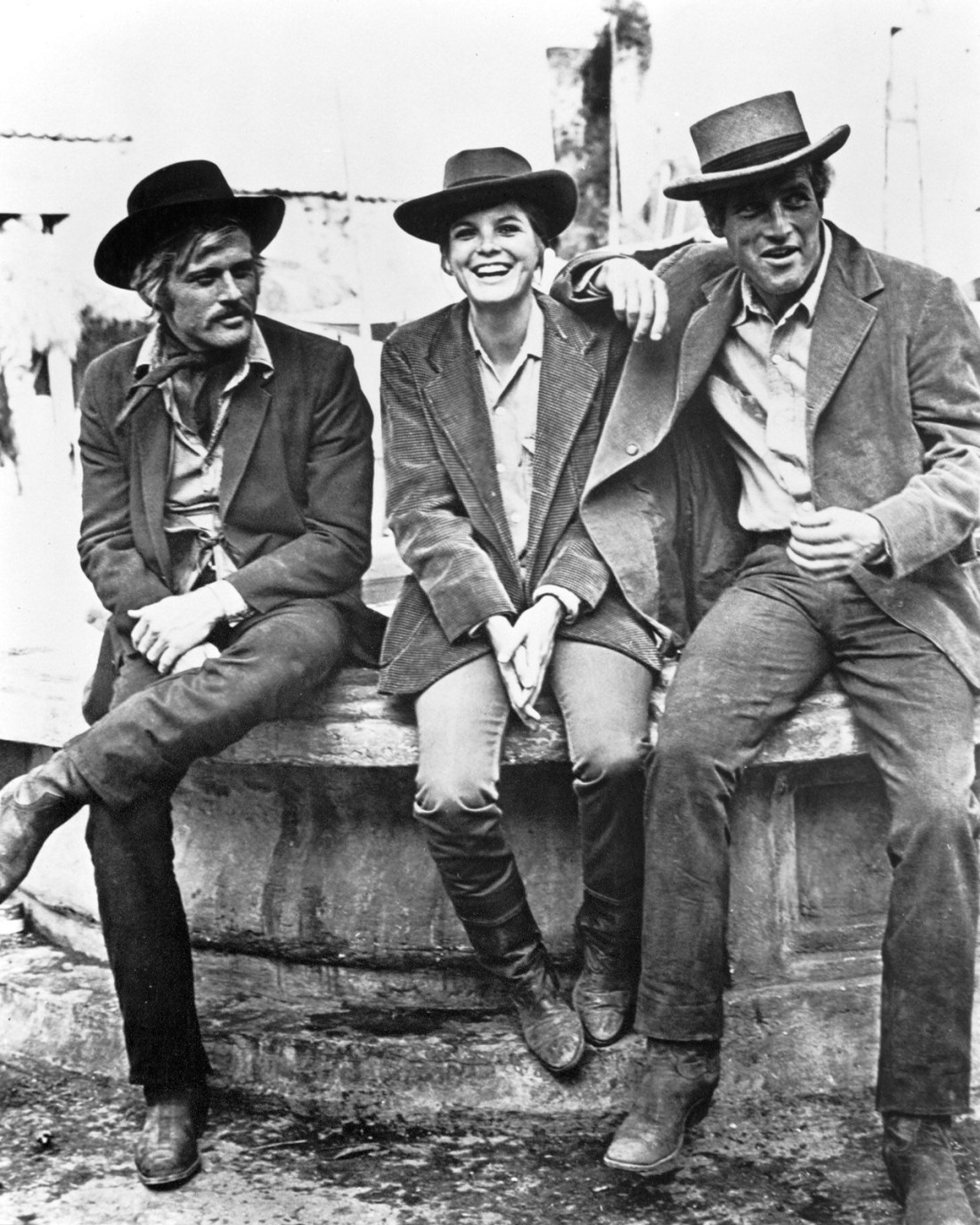 Robert Redford, Katharine Ross and Paul Newman on the set of Butch Cassidy and the Sundance Kid directed by George Roy Hill, 1969